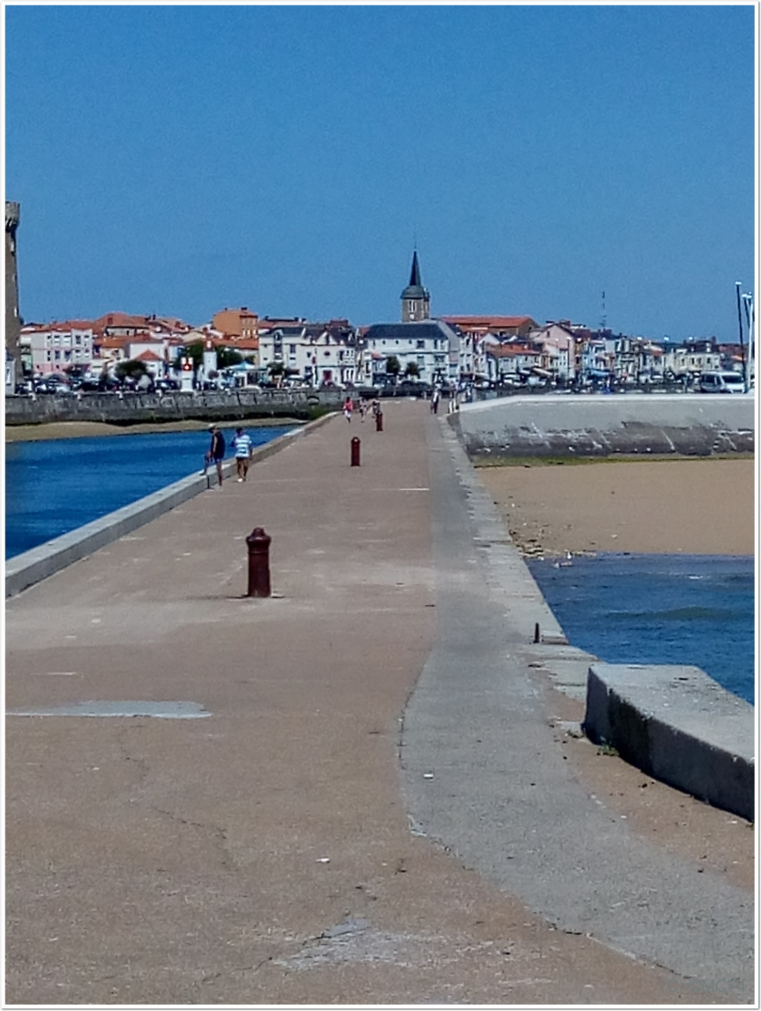 La plage est à 10 mn à pied de l’aire de camping-car, chère, en stabilisé (mais idéale car en plein centre-ville).