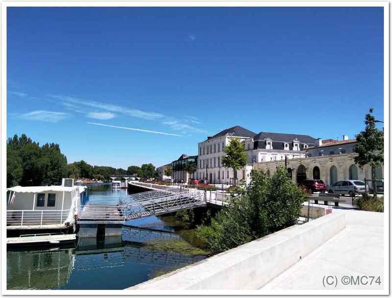 Depuis Saintes, nous gagnons Cognac. Installation au camping municipal sur les bords de la Charente. Une piste cyclable relie le camping à la ville. Les quais sont magnifiques. Nous visitons la ville et ses maisons de cognac. Malheureusement pour nous, soit les visites de ces maisons étaient complètes, soit ce n’était pas le bon jour !