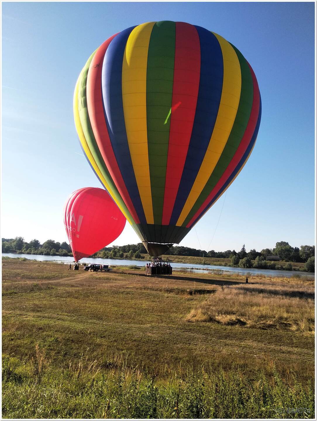 Petit tour de vélo et nous avons le plaisir d’assister au décollage de montgolfières sur les bords de la Loire.