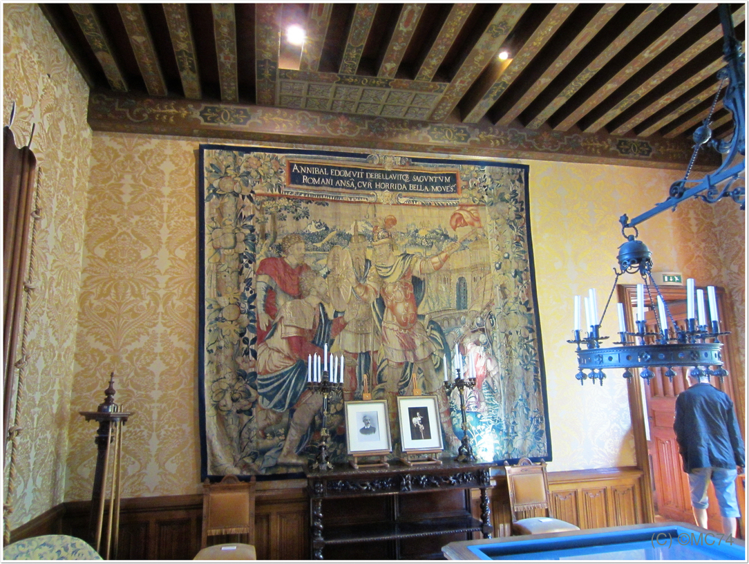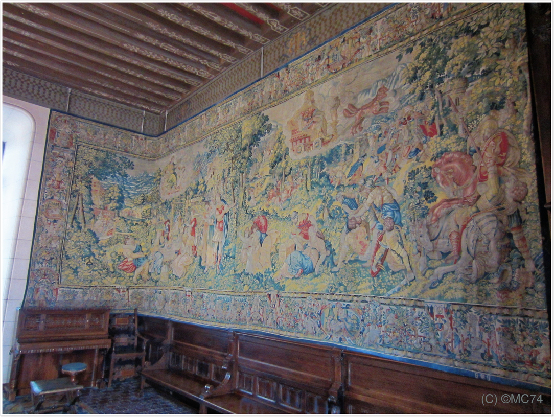 Beau château avec des très beaux meubles et de très belles tapisseries. Remarquez le porc-épic, symbole royal de Louis XII sur les cheminées et les façades. Nous continuons le visite par les écuries. Les chevaux étaient sûrement mieux traités à l’époque que les manants !