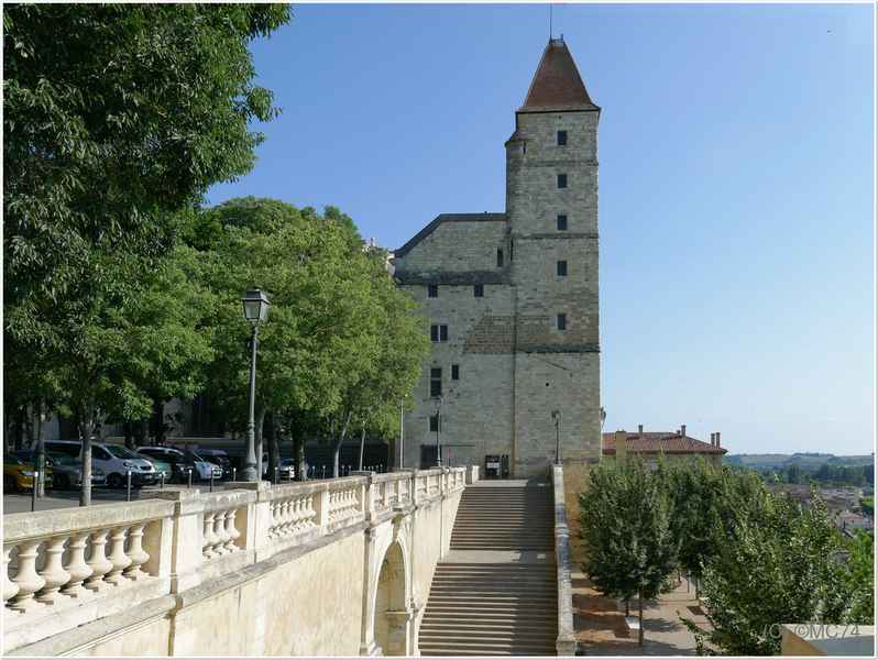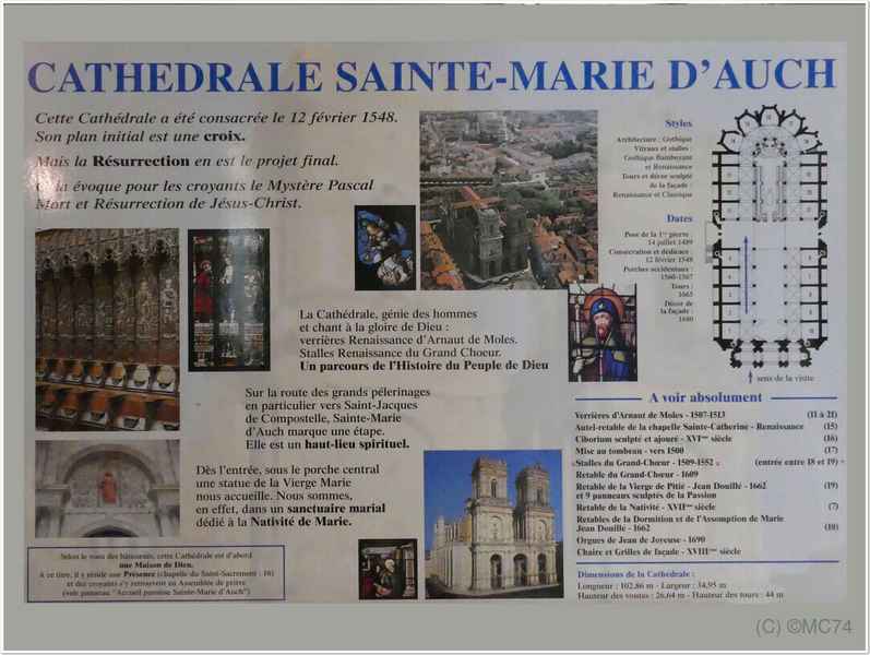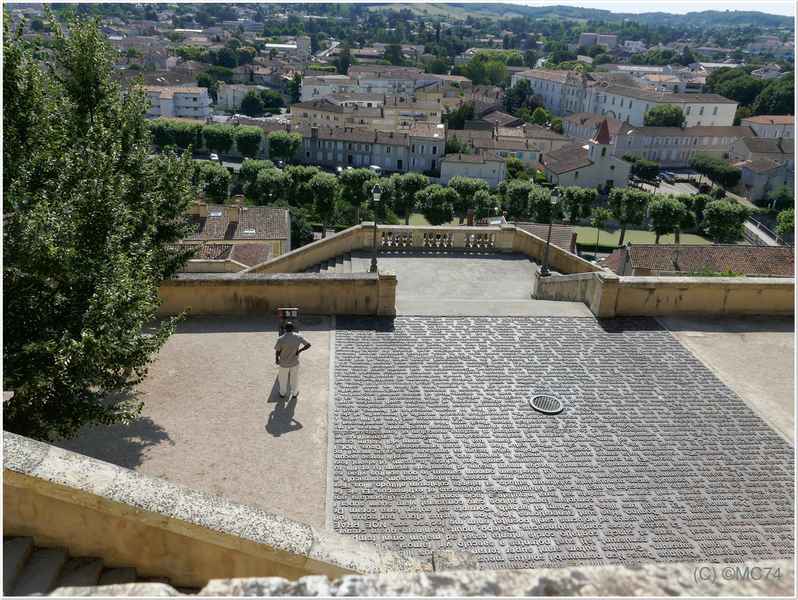 Nous arrivons au pied de l’escalier monumental d’Auch construit entre 1858 et 1863. 374 marches en comptant les doubles volées, mais il suffit de 233 pour l’escalader.