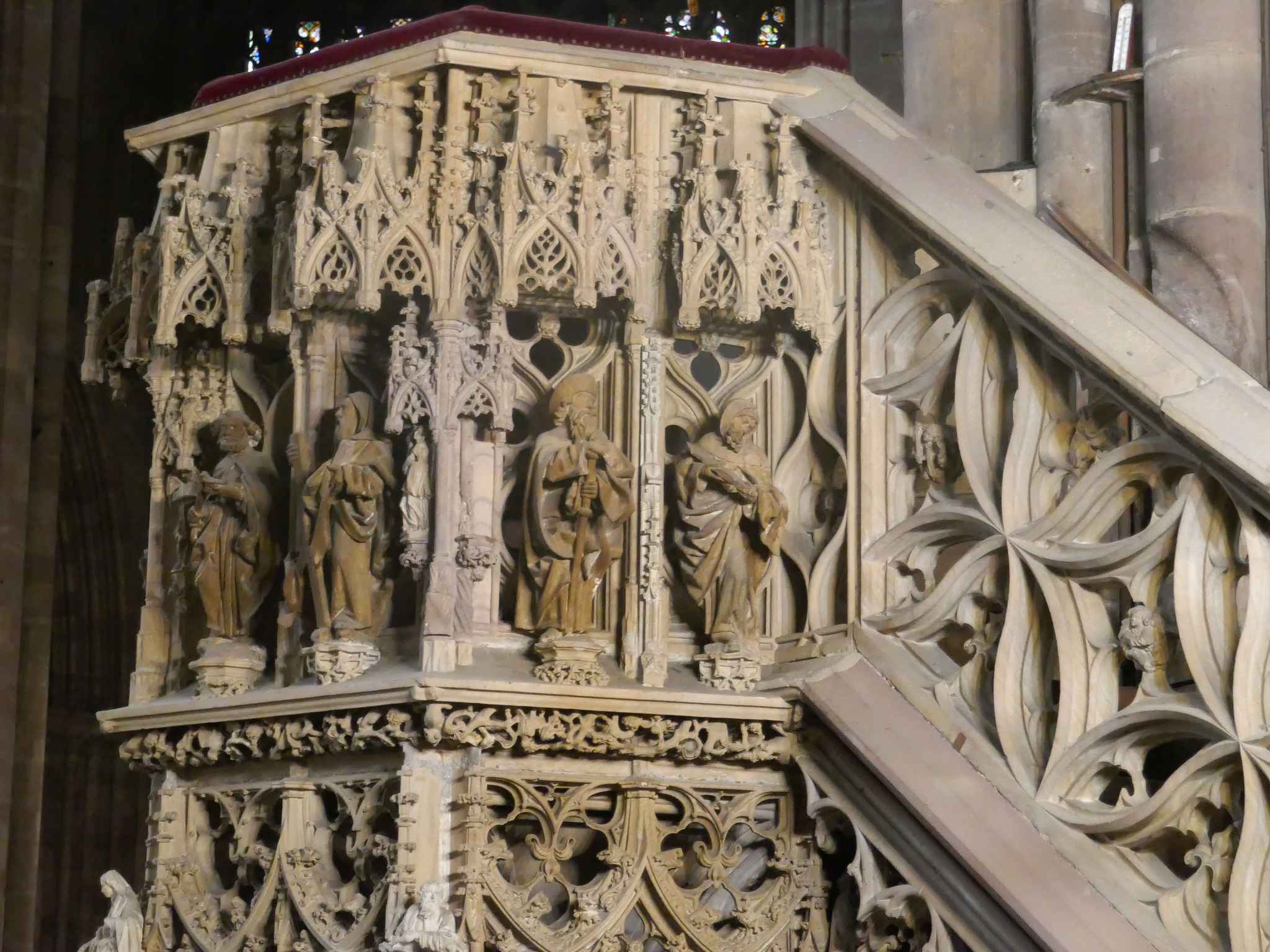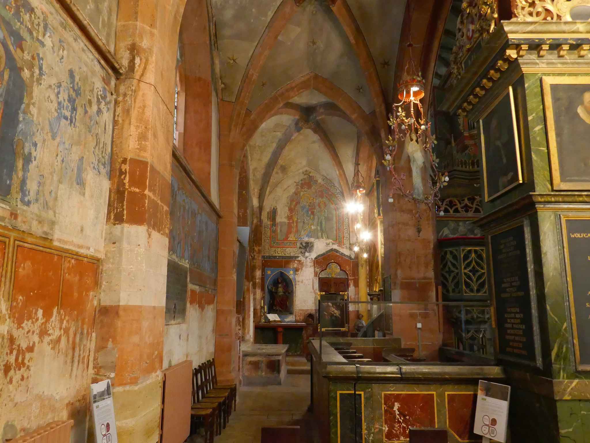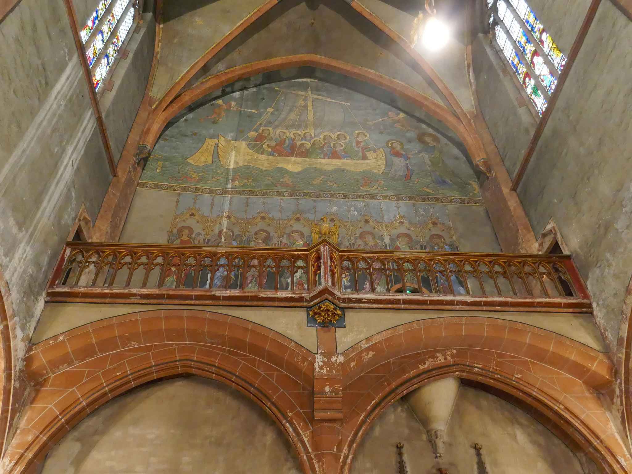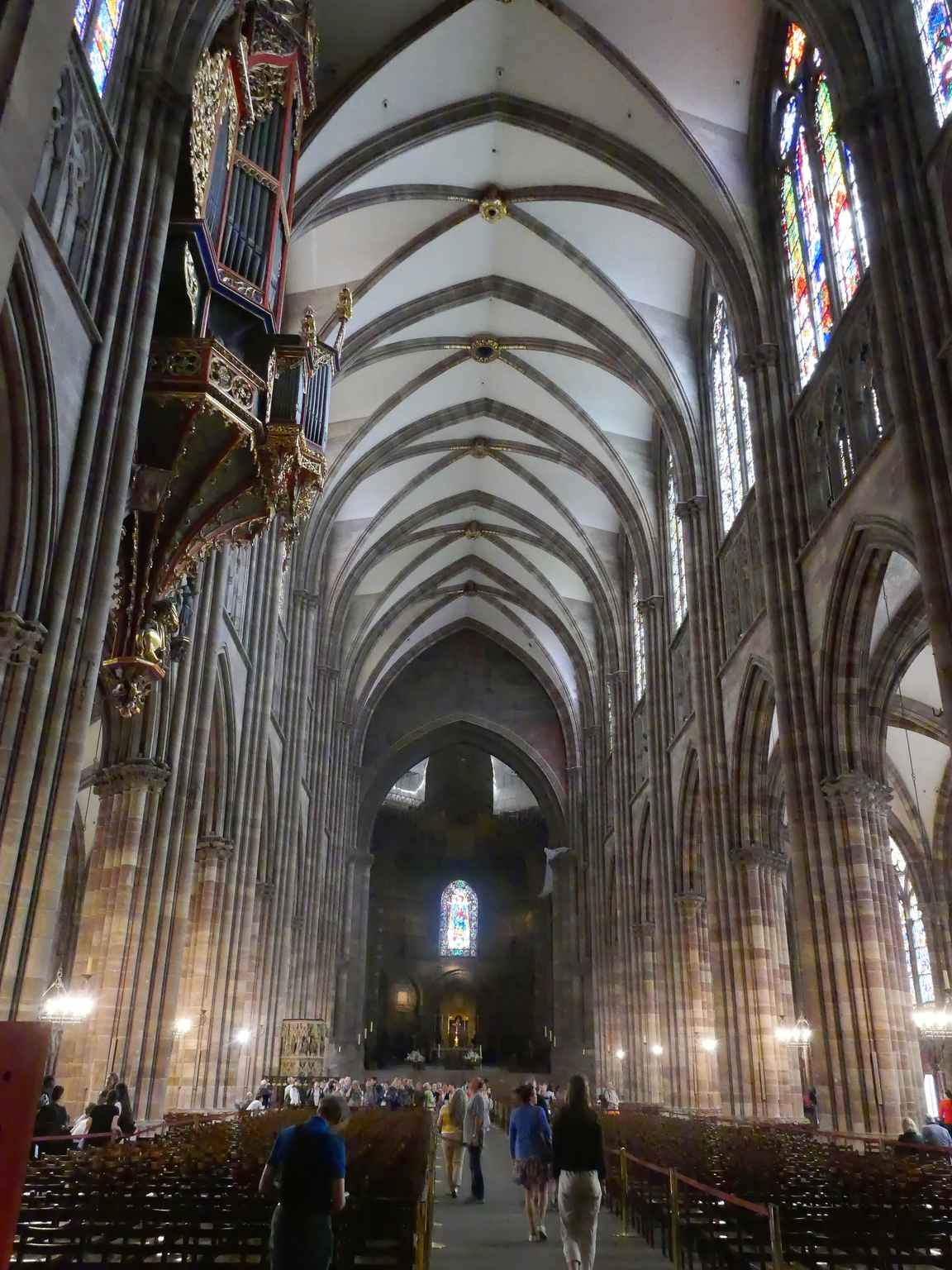 En rentrant, par hasard, nous arrivons à l’église Saint Pierre Le Jeune. Magnifique orgue, murs et piliers peints, très beau cloître, une belle découverte.