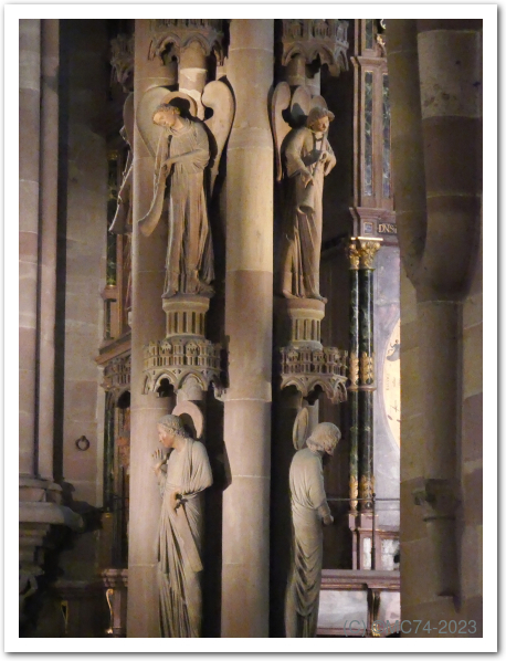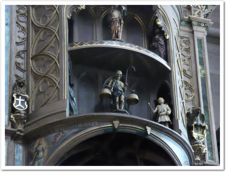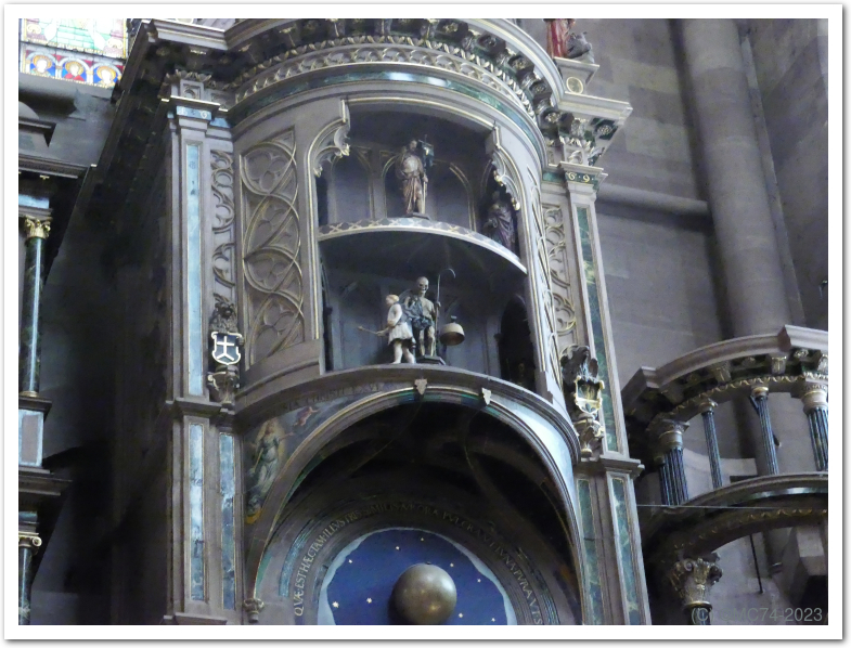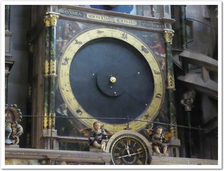 Les cadrans sont aussi nouveaux, mais l’horloge refabriquée par Schwilgué entre 1838 et 1842 diffère peu de l’ancienne.
