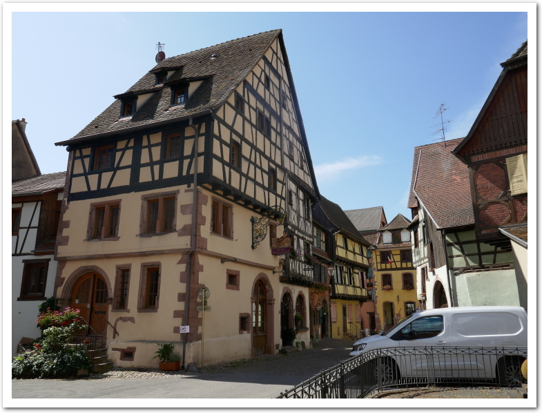 Nous visitons tout d’abord Riquewhir. Tarif de stationnement stratosphérique: 8 € pour 3 heures ! Joli village avec ses maisons traditionnelles dont certaines sont remarquables. Nous gagnons ensuite Eguisheim. Nous nous posons à l’aire de camping-car de la commune: 19€35 avec eau et électricité sur goudron. Joli petit village dans les vignes. Plus petit que Riquewhir, mais plus familial et sympathique.